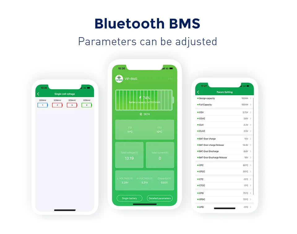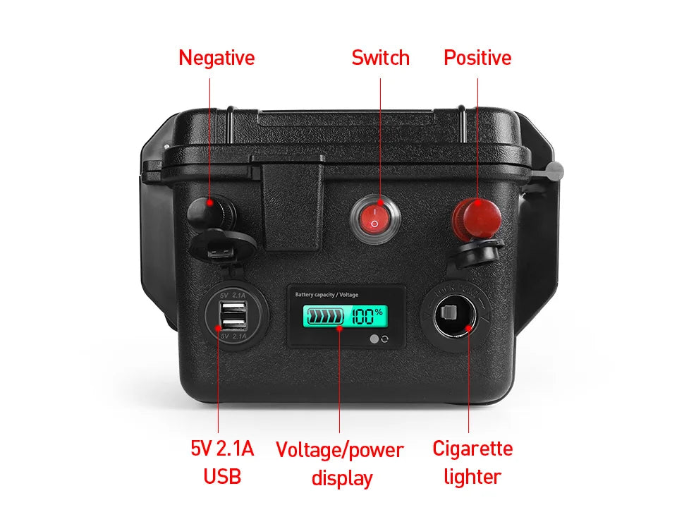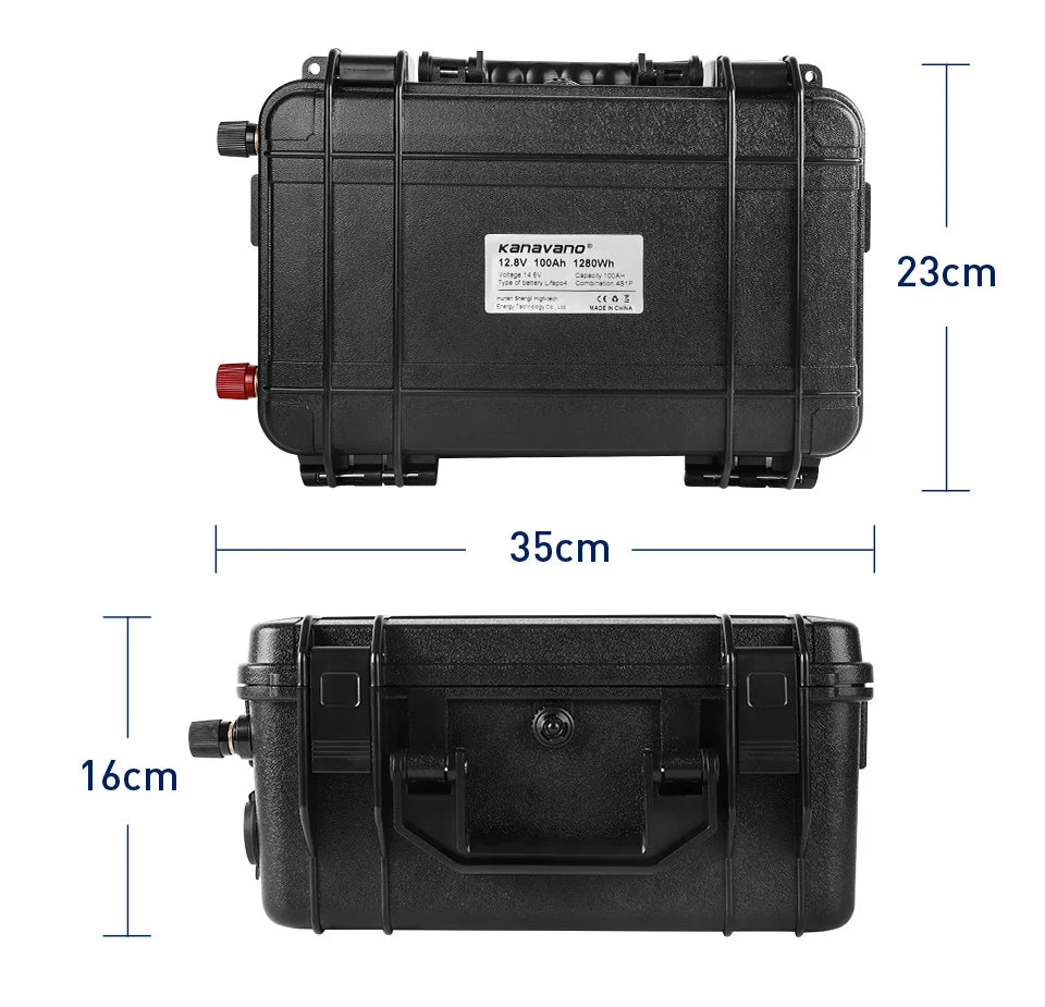 1, 12V 100Ah High capacity LiFePo4 Battery pack with build-in Bluetooth BMS, case.